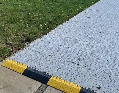 Stadia X Lite ground covering is a suitable for many applications such as marquee and military tent flooring, walkways, temporary and semi permanent wheel chair access, auto racing teams and film production. Edging ramps give safe pedestrian access and eliminate trip hazards. No tools are required for installation or extraction, which makes Stadia X Lite quick and easy to use.